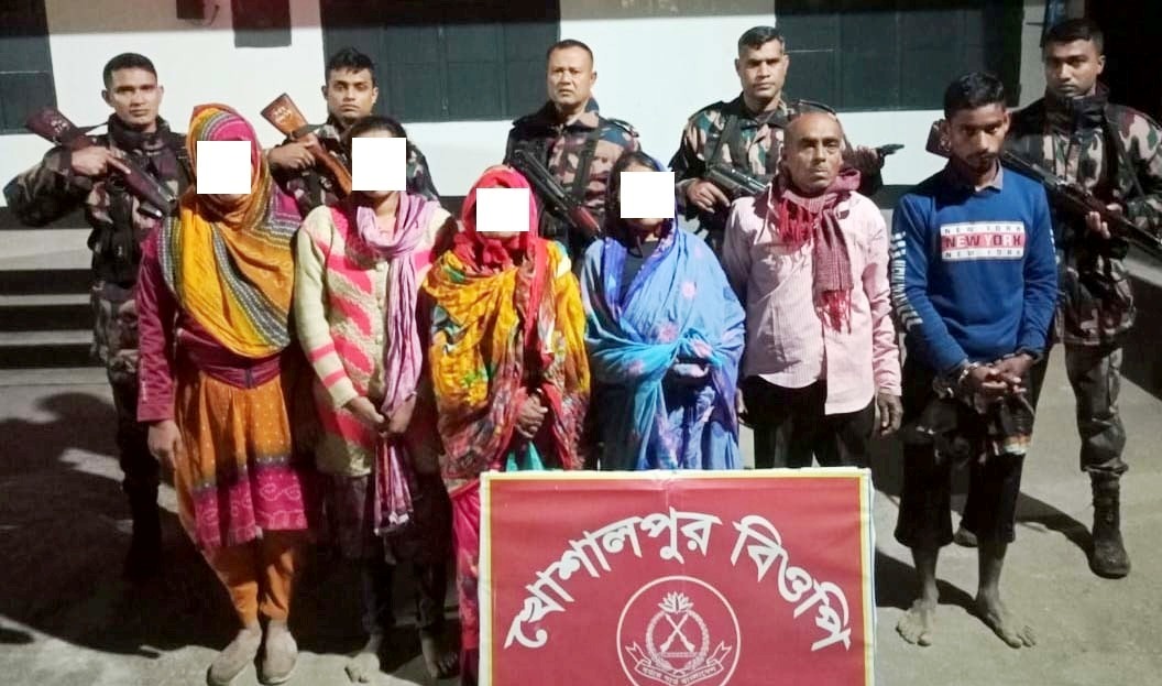মহেশপুর ৫৮ বিজিবি সীমান্তে মানব চোরাচালানের সময় অভিযান চালিয়ে স্হানীয় দালাল সহ ৭ জনকে আটক করেছে। গত ১৫নভেম্বর-২৫ তারিখ আনুমানিক সকাল ৬টা ১৫ মিনিটে মহেশপুর ব্যাটালিয়ন (৫৮ বিজিবি) এর অধীনস্থ…