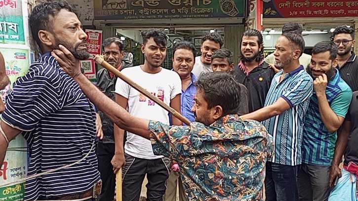 বৈদ্যুতিক খুঁটিতে বেঁধে মারধর!