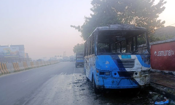 সিদ্ধিরগঞ্জ মহাসড়কে পার্কিং করা যাত্রীবাহী বাসে আগুন