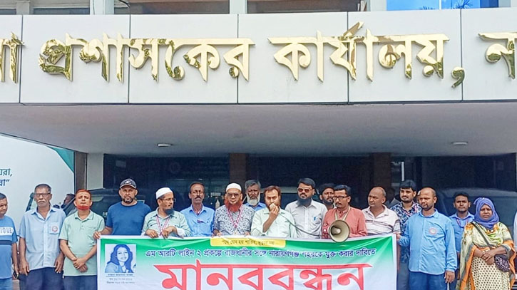 না’গঞ্জকে মেট্রোরেল প্রকল্প-২ যুক্ত করার দাবিতে মানববন্ধন