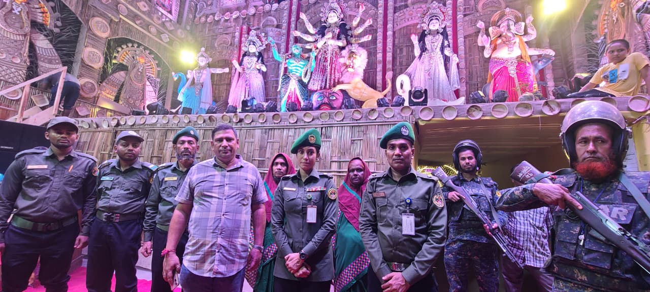 দুর্গাপূজায় নিরাপত্তায় অনন্য ভূমিকা রাখলো বাংলাদেশ আনসার ও ভিডিপি সদস্যরা