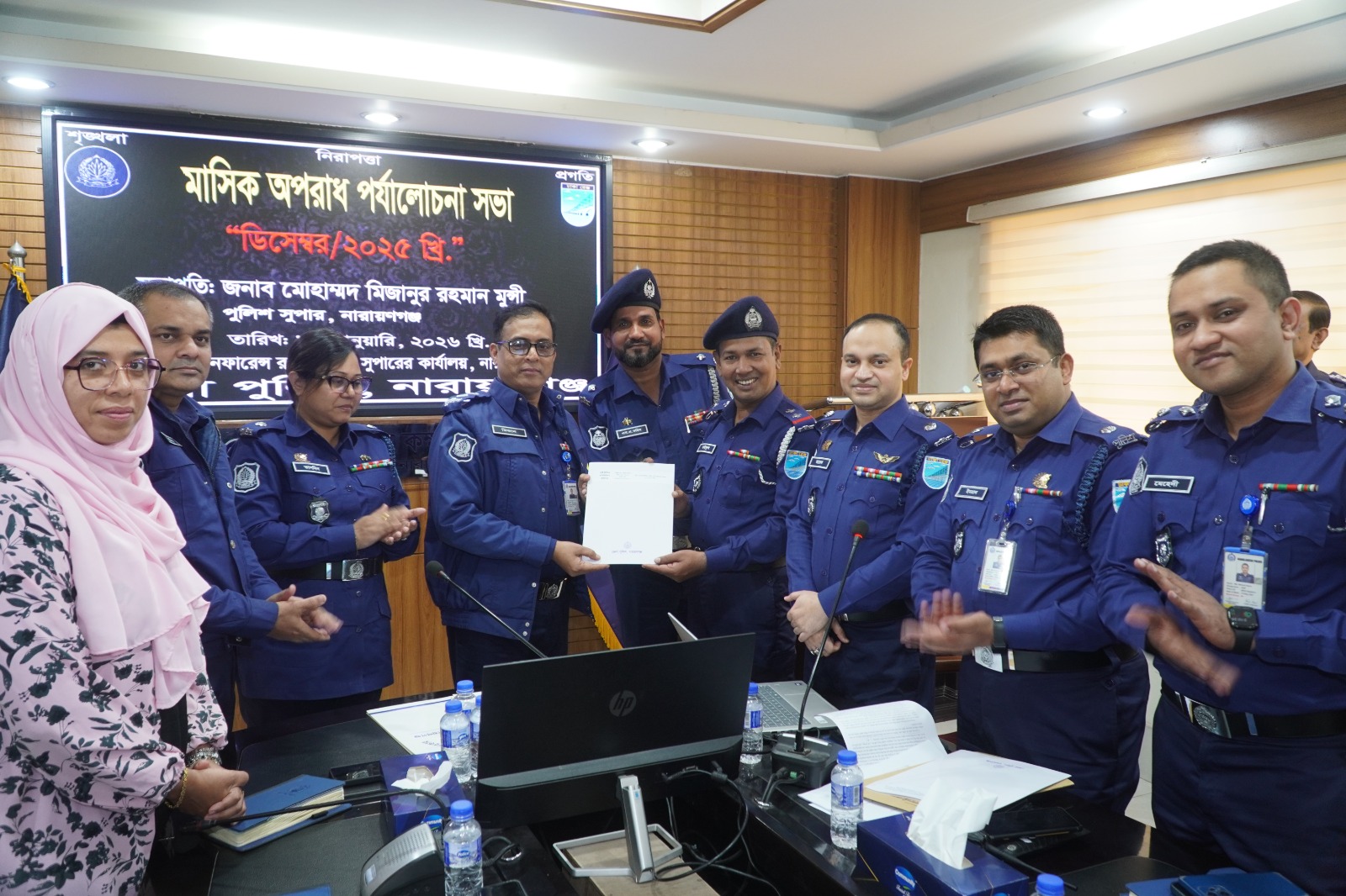 ত্রয়োদশ জাতীয় সংসদ নির্বাচন ও গণভোট-২০২৬ উপলক্ষে নারায়ণগঞ্জ-৫ আসনের নির্বাচনী এলাকার প্রতিদ্বন্দ্বী সকল প্রার্থীদের নিয়ে বিশেষ আইন-শৃঙ্খলা সভা অনুষ্ঠিত হয়েছে। শনিবার দুপুরে নারায়ণগঞ্জ বন্দর উপজেলা পরিষদ অডিটোরিয়ামে ত্রয়োদশ জাতীয় সংসদ নির্বাচন ও গণভোট-২০২৬ উপলক্ষে নারায়ণগঞ্জ-০৫ আসন নির্বাচনী এলাকার সকল প্রতিদ্বন্দ্বী প্রার্থীদের নিয়ে বিশেষ আইন-শৃঙ্খলা সভা অনুষ্ঠিত হয়। উক্ত অনুষ্ঠানে প্রধান অতিথি হিসেবে উপস্থিত ছিলেন নারায়ণগঞ্জ জেলা প্রশাসক ও জেলা রিটানিং অফিসার মোঃ রায়হান কবির। বিশেষ অতিথি হিসেবে উপস্থিত ছিলেন নারায়ণগঞ্জ জেলা পুলিশ সুপার মোহাম্মদ মিজানুর রহমান মুন্সী ও অতিরিক্ত জেলা প্রশাসক মোহম্মদ আলমগীর হোসাইন। আরো উপস্থিত ছিলেন লেফটেন্যান্ট কর্নেল আরেফিন রাব্বি, সিও ৭ আর্টিলারি মির্জা মোহাম্মদ আরাফাত, লেফটেন্যান্ট কর্নেল এস এম সাজ্জাদ হোসেন, জেলা আনসার কমান্ডার কানিজ ফারজানা শান্তা। নারায়ণগঞ্জ বন্দর উপজেলার নির্বাহী কর্মকর্তা শিবানী সরকার সভাপতিত্বে উক্ত অনুষ্ঠানে প্রার্থীরা তাদের নির্বাচনী ইশতেহার পাঠ করে শোনান।
