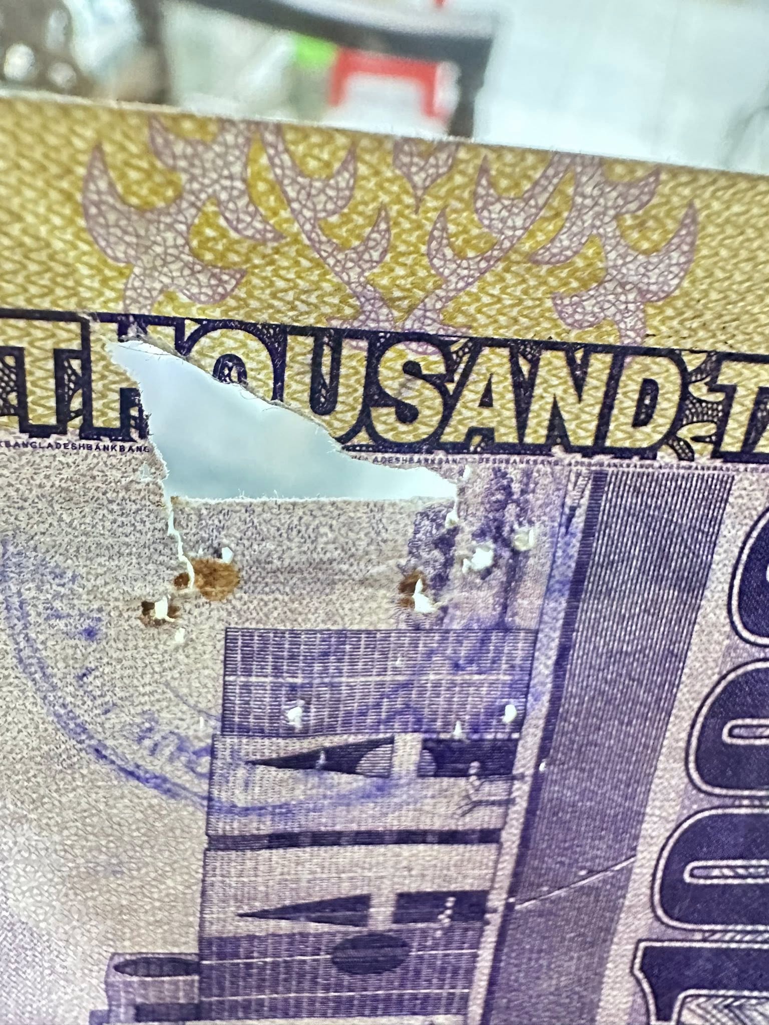 কিন্তু বাস্তব চিত্র ভিন্ন। অধিকাংশ ব্যাংকে এই নির্দেশনা অমান্য করে নিয়মিতভাবে স্ট্যাপলার পিন দিয়ে বান্ডেল করা হচ্ছে, যা নোটের মাঝখানে ছিদ্র তৈরি করে এবং সামান্য টান দিলেই ছিঁড়ে যাওয়ার ঝুঁকি তৈরি করে। গ্রাহকদের অভিযোগ, ব্যাংক থেকে টাকা উত্তোলনের সময় বান্ডেলের ওপর ও নিচে ভালো নোট রেখে মাঝখানে ছেঁড়া বা দুর্বল নোট গুঁজে দেওয়া হয়। ফলে টাকা গ্রহণের সময় সমস্যা ধরা না পড়লেও পরে লেনদেনের সময় বড় ধরনের বিড়ম্বনায় পড়তে হয়। অনেক ক্ষেত্রে দোকানদার বা অন্য গ্রাহক ছেঁড়া নোট নিতে অস্বীকৃতি জানায়। এমনকি যে ব্যাংক থেকে নোট নেওয়া হয়েছে, পরবর্তীতে সেই ব্যাংকও তা গ্রহণ করতে অনীহা প্রকাশ করে। রাজধানীসহ বিভিন্ন অঞ্চলের গ্রাহকদের সঙ্গে কথা বলে জানা যায়, ঈদসহ বড় উৎসবের আগে এই সমস্যাটি আরও প্রকট আকার ধারণ করে। বড় অঙ্কের টাকা উত্তোলনের সময় বান্ডেলভর্তি নোটে স্ট্যাপলার পিন ব্যবহার করা হয়, যা খুলতে গিয়ে একাধিক নোট ছিঁড়ে যায়। এতে করে আর্থিক ক্ষতির পাশাপাশি মানসিক ভোগান্তিও বাড়ে।